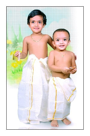 Order ONline Kids kasavu Mund for all ages Velcor and ordianday dhothies from kingnqueenz.com